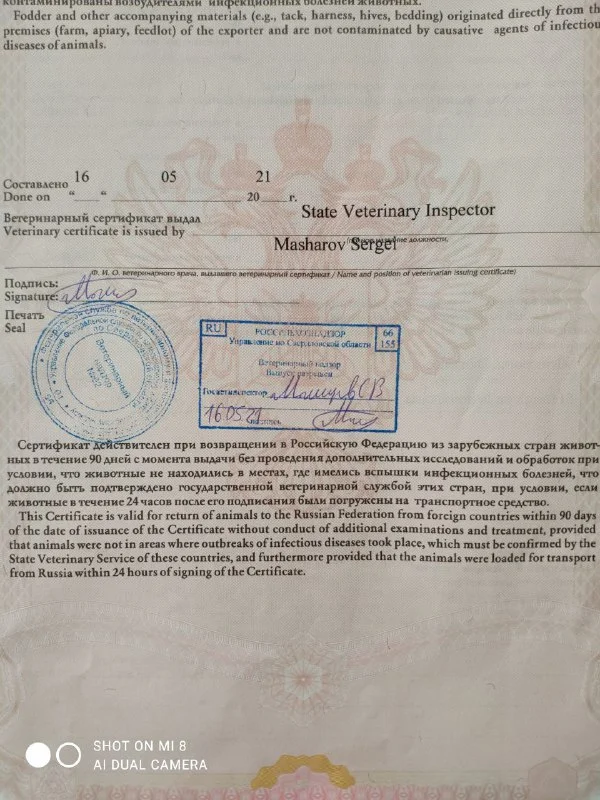 4. За 4 часа до рейса прохожу вет контроль в Росси, там меняют свидетельство на розовый сертификат