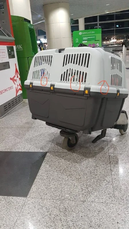 Спасибо за информацию про болты. Мы в 2019 щенка 25 кг отправляли в Лондон. Не помню что бы там у клетки были болты.