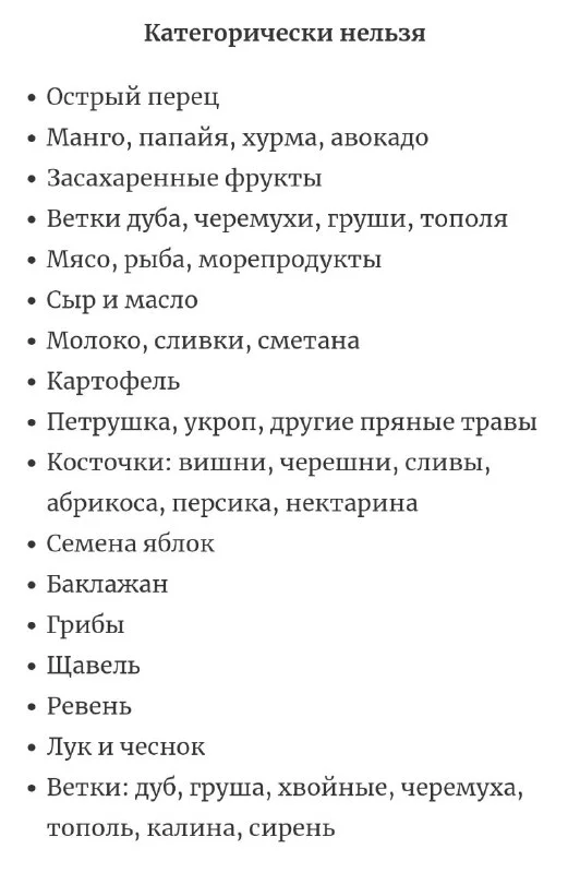 Кушать может фрукты, овощи, зерносмесь, каши
