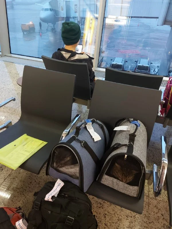 мы летели с двумя котами паспорта на меня, а билеты на котов на мужа были, всем было все равно, но м...