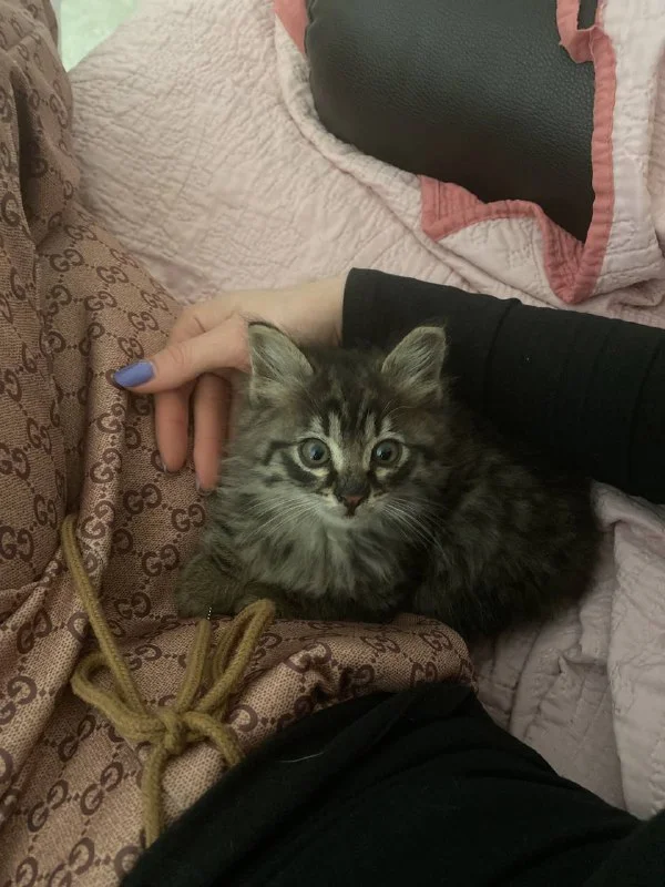 Забрался в машину ко мне котик, весь перед разобрали но достали, очень красивый, заберите пж , я не могу себе оставить( у меня Амстаф дома