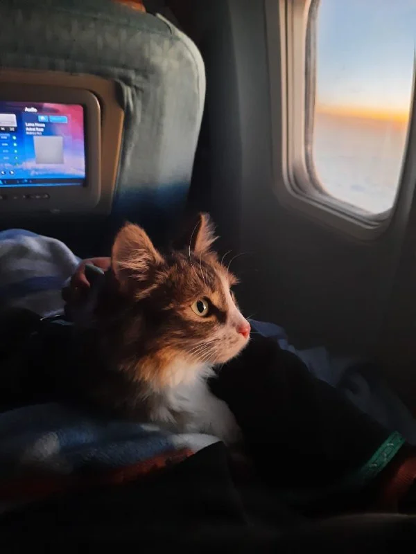 В начале все было идеально, коты тихие мирные и в самолете все гладко, даж...