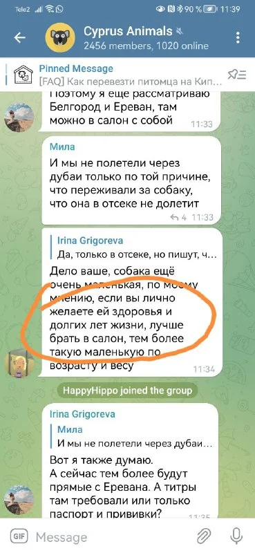 А практикуется такое, что кто-то летит на Кипр из Москвы и перевозит животное за вознаграждение? У м...