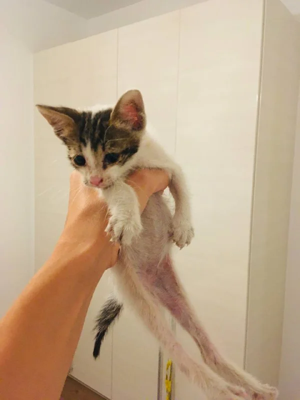 Вроде как девочка, на вид месяц. Обработал от блох и клещей, проглистагонил. Очень добрая, ласкучая и умная (в туалет ходит строго в одно место, на клиенку, думаю приучить к лотку проще простого будет). Может кто-то захочет забрать? Думаю она будет очень сильно вас любить.