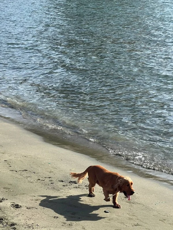 Чья Потеряшка гуляет по пляжу Four Seasons ? Пришла на пляж с другом -белым Лабрадором.