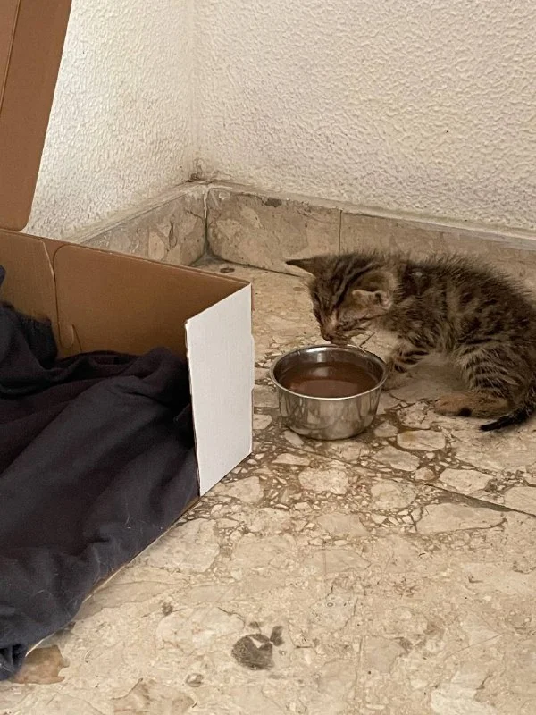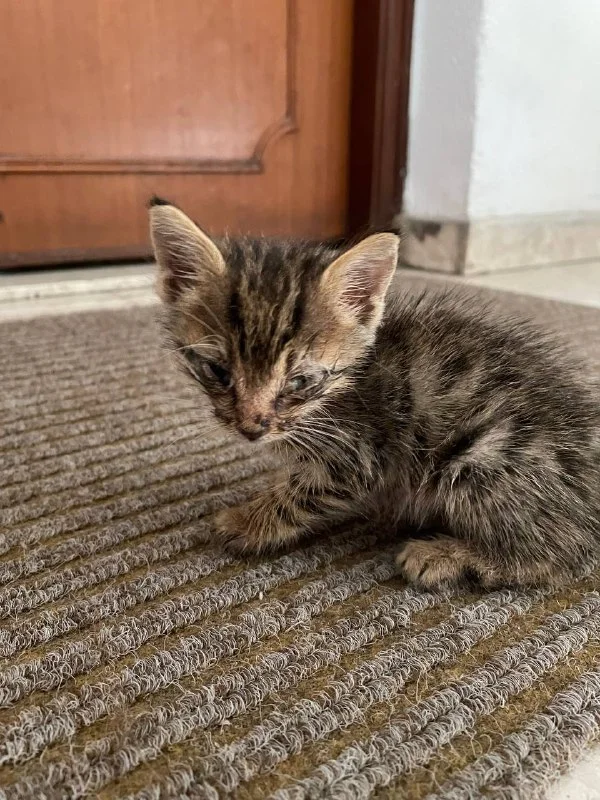 Котенок отбился от мамки и он по всей видимости недавно родился и он совсем слепой