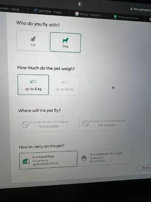 Подскажите, пожалуйста, если мы летим из Еревана в Ларнаку, у собаки европаспорт. Никаких дополнител...