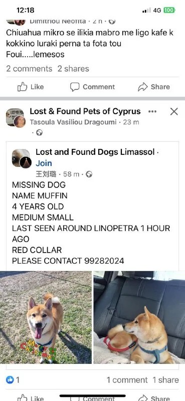 Привет, убежала собака сиба-ину, район Гермасойя, если кто-то увидит позвоните 96192662