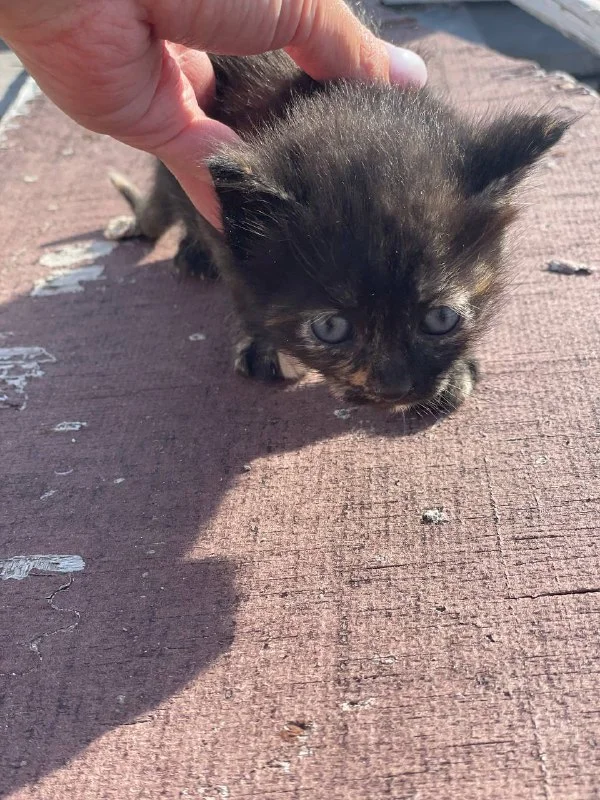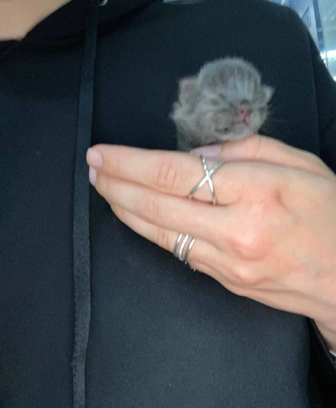 нашла в помойке это чудо без мамы, орал часа 2, рядом ни мамки, ни других котят