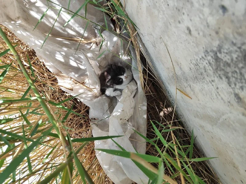 А там: ни мамы кошки, ни других котят. Он сидит и плачет в кустах😭