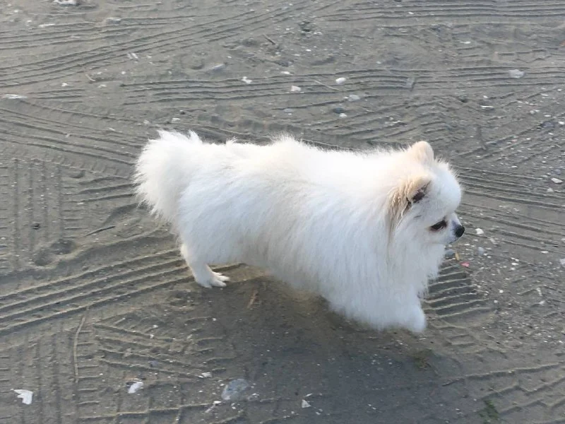 По собачьему пляжу в Лимассоле бегает маленький пушистый белый шпиц в ошейнике, видимо потерялся