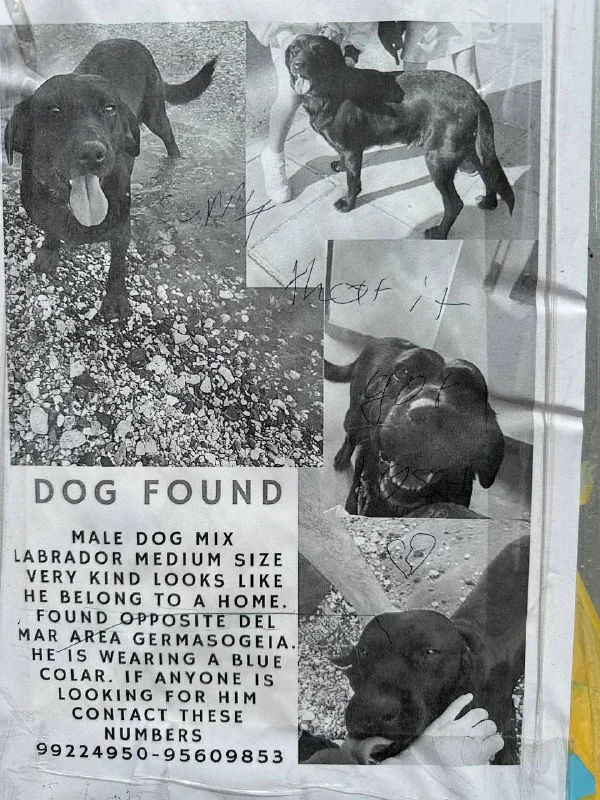 На Макариуса, 41 (Лимассол) у дороги бегает песель с ошейником. Приблизится не дает — агрессирует. Скорее всего потеряшка. Может знаете хозяев? Или может в других группах писали о потери?