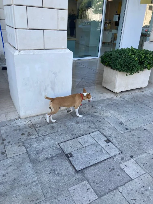 Пёсик в ошейнике бегает по Лимасол Марина. Хозяев не увидела рядом