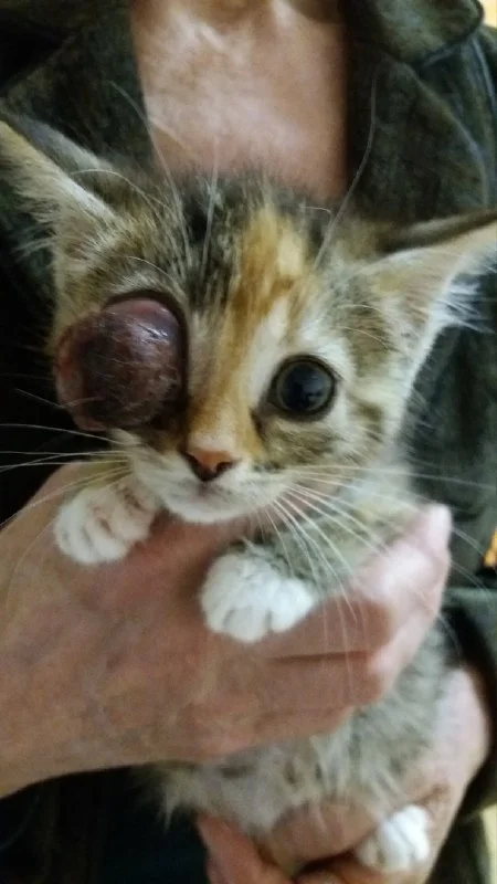 Доброе утро!Соседке(бабушке)привезли троих котят,у одного глаз в таком состоянии!Чем капать,посоветуйте🙏