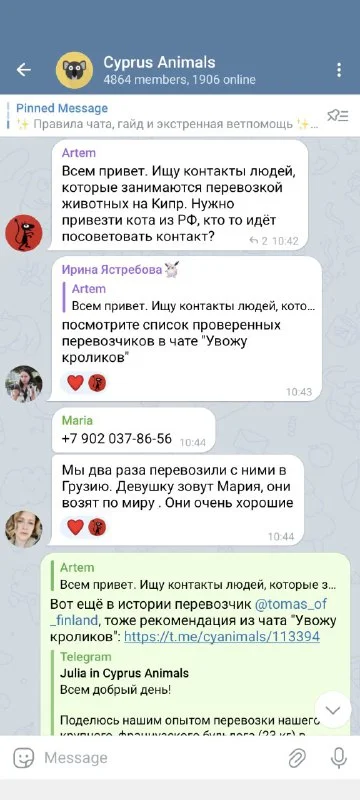 Всем добрый вечер, порекомендуйте, пожалуйста, проверенную перевозку Москва или Минск-Кипр. Нужно доставить котенка. Или может кто-то летит и хочет подзаработать? Документы в порядке, котика привезут к вам и а Кипре в аэропорту заберут