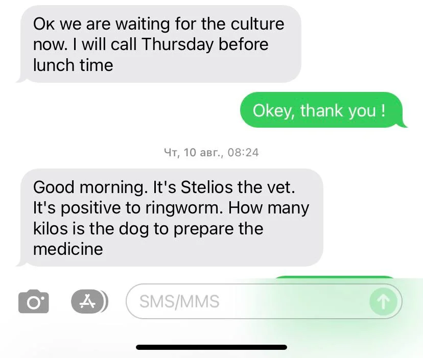 Сейчас пришлю тебе в личное сообщение телефон нашего ветеринара. Однажды она по фото нам помогла.