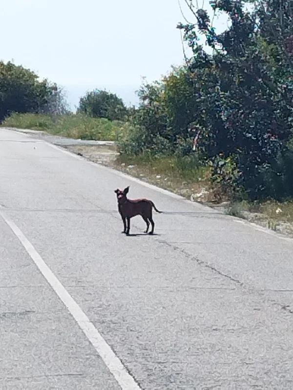 Бегает в Конии, перед выездом на автостраду в сторону лимассоле. Не подходит. Ошейник вроде красный и брелок.