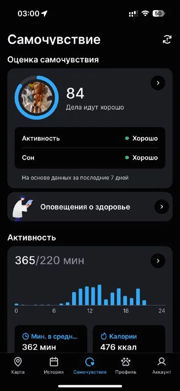 также есть история по датам и часам, можно смотреть как перемещалась собака. называется tractive