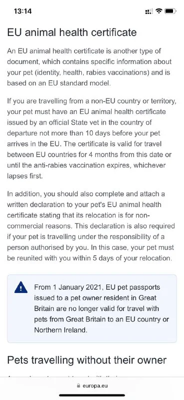 Хотя вот читаю, например, сайт Finnish Food Authority (они просто всегда отлично пишут инструкции по ввозу), и у них прямо прописано, что финское животное может вернуться из третьей страны по европаспорту. И американская Animal Health and Inspection Service тоже пишет о такой опции для возвращения в ЕС по европаспорту.