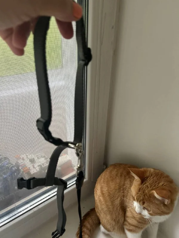 Это наша вторая шлейка. Не для этого кота брала. Из первой выросла тогда год назад кошка.