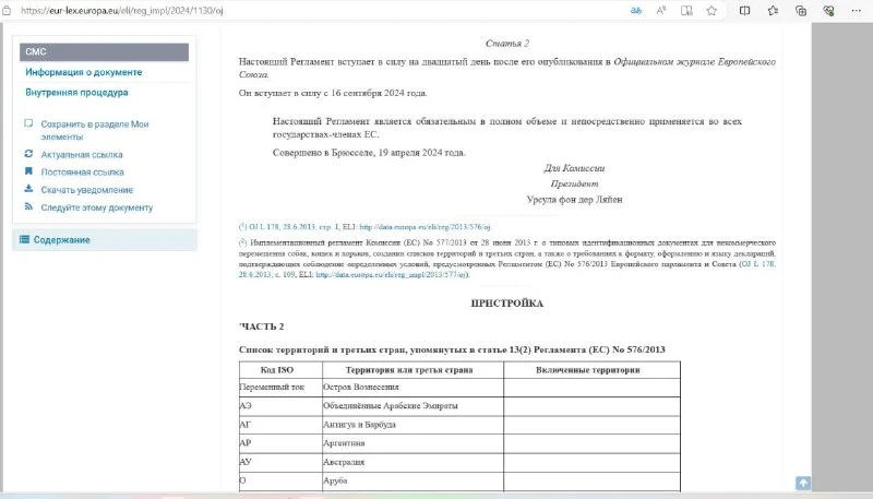 В шапке документа написана дата вступления в силу 16.05.2024. на последней странице перед списком стран строчка- документ вступает в силу через 20 дней после размещения,те после 19.04.2024. И ниже дата применения 16.09.2024.
