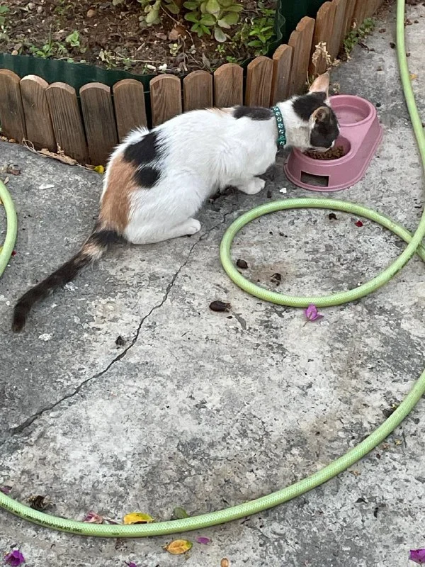 Всем привет! К дому пришла кошка с ошейником и разными глазами, возможно потерял кто. Район альфамеги и стефаниса