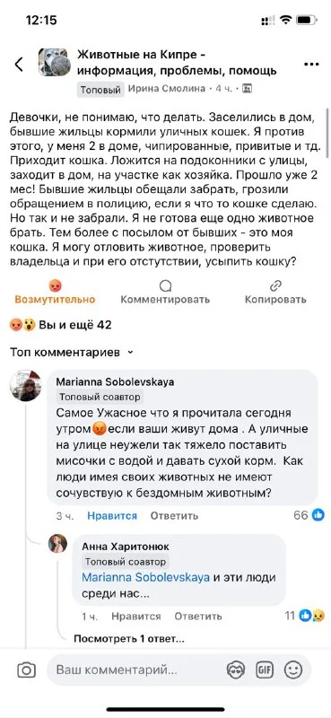 Всем привет! Нужен человек, который сможет поить и кормить бездомных кошек и котят на время моего отсутствия. За оплату. Локация у Склавинитис в районе Коламбия и Гермасоя. Пишите в ЛС
