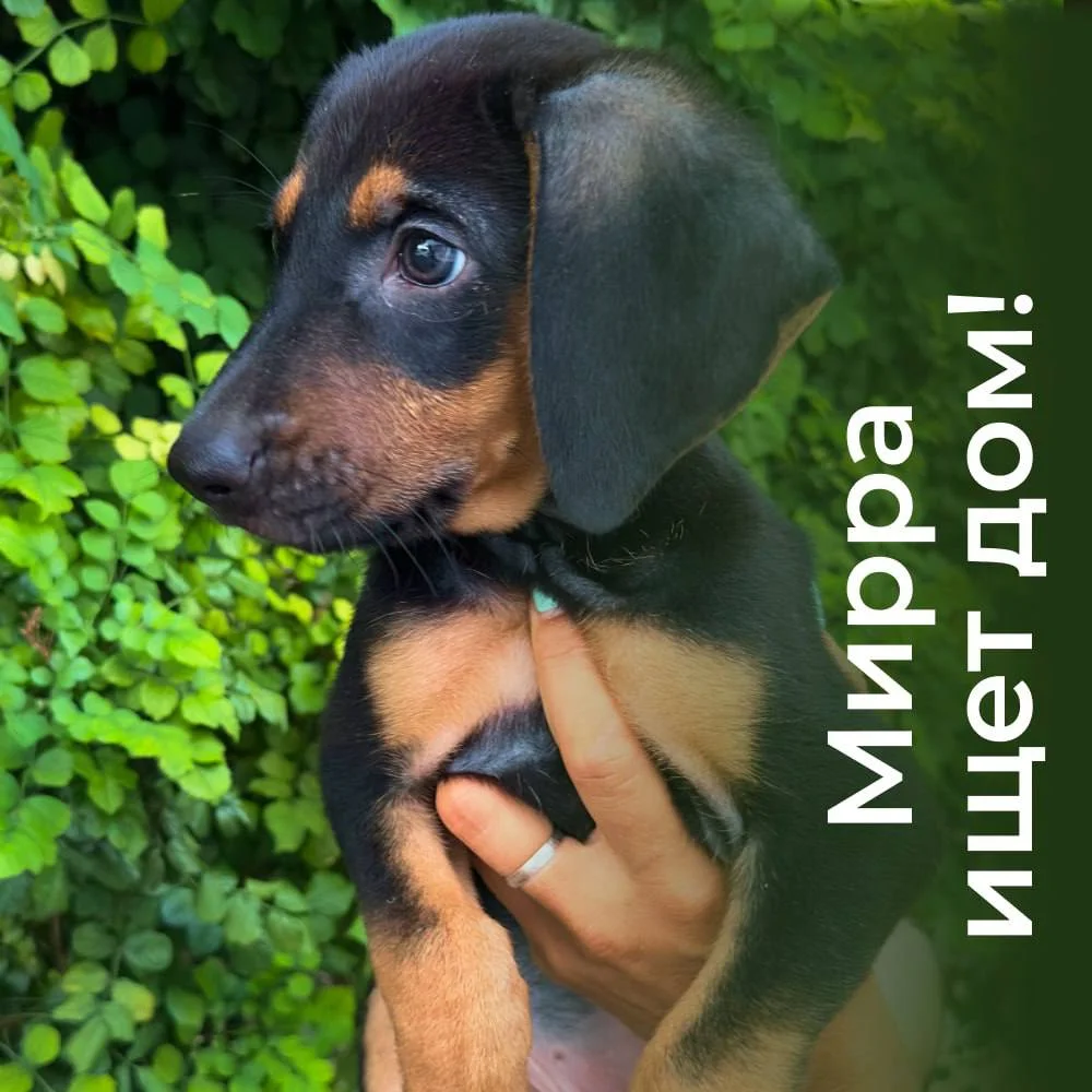 Мирре примерно 3 месяца уже. Она активный, здоровый щенок, любит играть, любопытная и забавная.