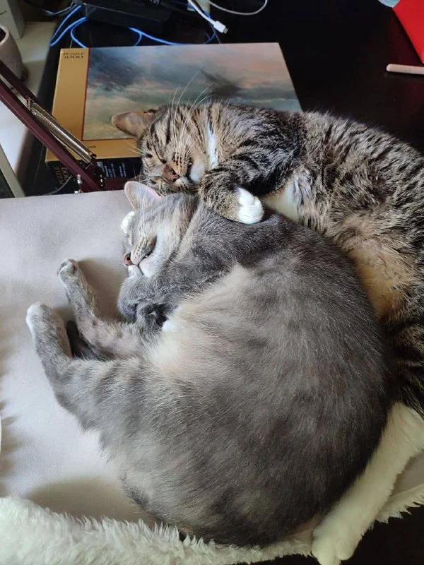 Ловили с ловцами, кот попался, кошка нет. Вернули кота, решили ловить только двоих (кошка как хвостик за котиком, она бы без него погибла 100%), их забрали в дом парой, очень повезло!!!два года к человеку кошка привыкала , и какая стала булочка