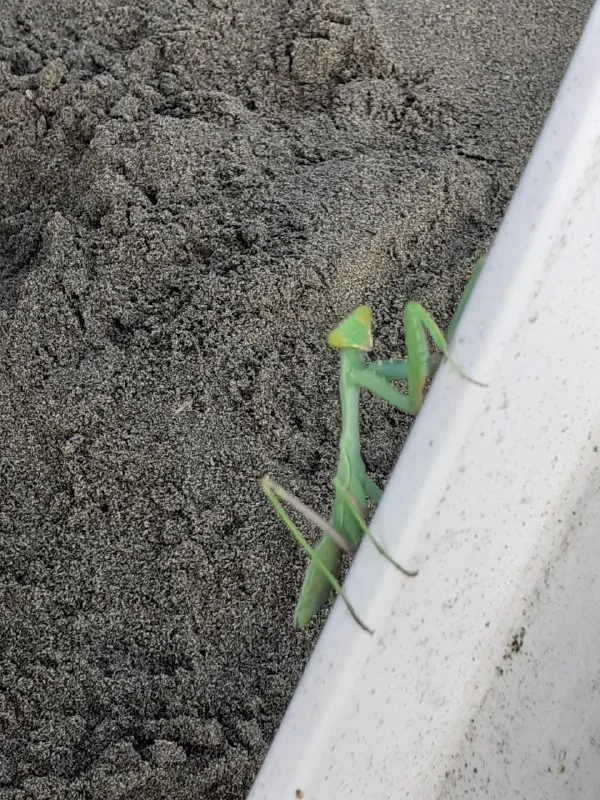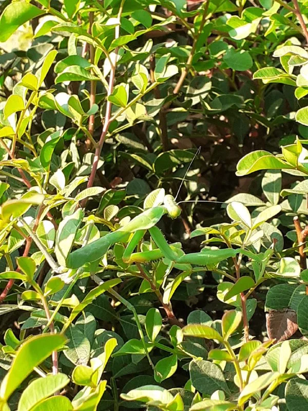 Хорошо я хоть в очках была, телефон с собой кормить кошек не беру🤣я подумала из далека, что это какой-то пластиковый кусок, наклонилась и увидела богомола, ну он большой такой был см 8-9 лапкой замахивался, я его от кошки прикрыла кусок пенопласта лежал, он к ветке от пальмочки подошёл и рыжик прыгнул-он опять лапой замахнулся🤣просто Индийское кино было!В итоге он дошлепал до оливы и я увела кошек!Жаль телефона не было!Я как то на пляже тоже богомола до деревьев несла, так он всю дорогу на меня смотрел🤣