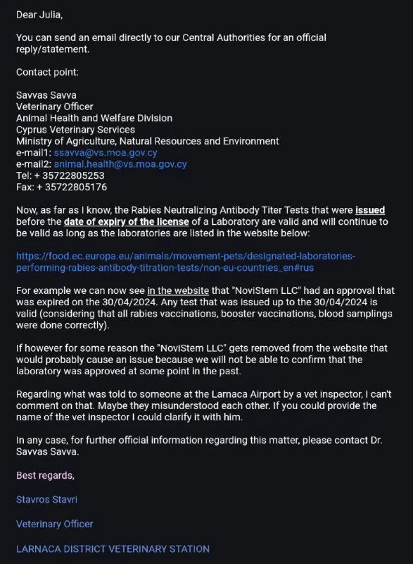 Надо узнавать непосредственно в пункте прилета , у меня было четкое понимание , что все титры, сделаные до 16.09.2024 считаются действительными - не надо забывать, что эти титры вынуждают в дальнейшем хозяев прививать каждый год от бешенства животное в определенные даты. Это не единовременный тест, а «бумага-документ» на годы. Получается ты сделал титры 2 года назад и прививал животное, а теперь это не действительный документ? Закон не должен иметь обратного действия ( в идеале)….