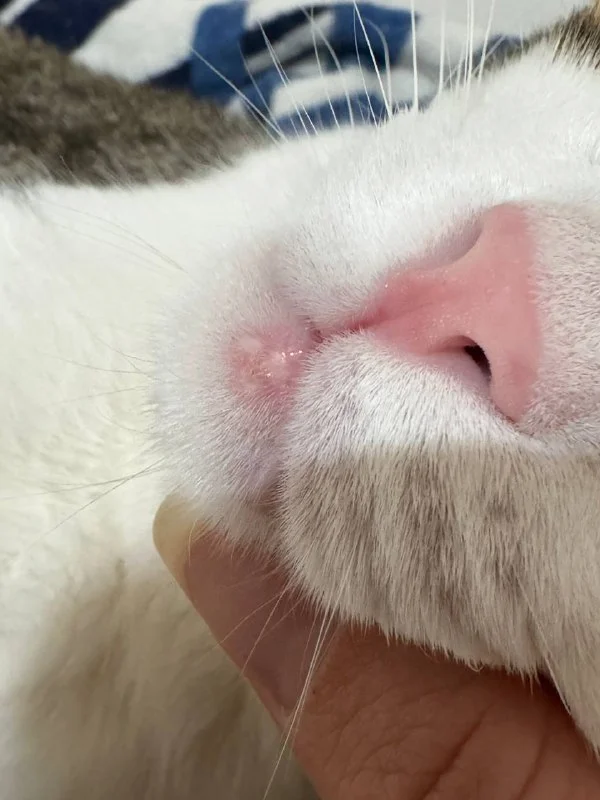 Уважаемые знатоки чата и кипрских котиков, что это за напасть такая на подбородке? Были ревакцинации в августе комплексной и в начале сентября рабиес. Миски все металлические, вода из фонтана с фильтром.