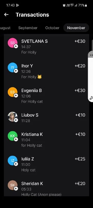Добрый день дорогие друзья,у меня новый случай спасения 🙈Написала знакомая что ее знакомые нашли кошечку ,зад весь лысый хвост в ранах ,все это гниёт,мажут какой то мазью которая есть дома,денег нет на врача будут делать как могут а там как получится 🙈Я поехала посмотреть на кошку и не смогла ее там оставить, посоветовавшись с Натальей Ширягиной , (Natalia Shir )отвезла в клинику и записала на себя .Хвост ампутировали в срочном порядке,после операции она была неделю в клинике под наблюдением,врач давал шансы 50/50 но она сильная девочка и хотела жить , поэтому сегодня я забрала ее домой из клиники ❤️Остался счёт ,который я хотела бы попросить вас помочь нам закрыть 🙏 Пожалуйста кто может помогите погасить счет 400 евро долг за кошечку Holly.😻
