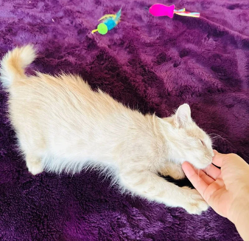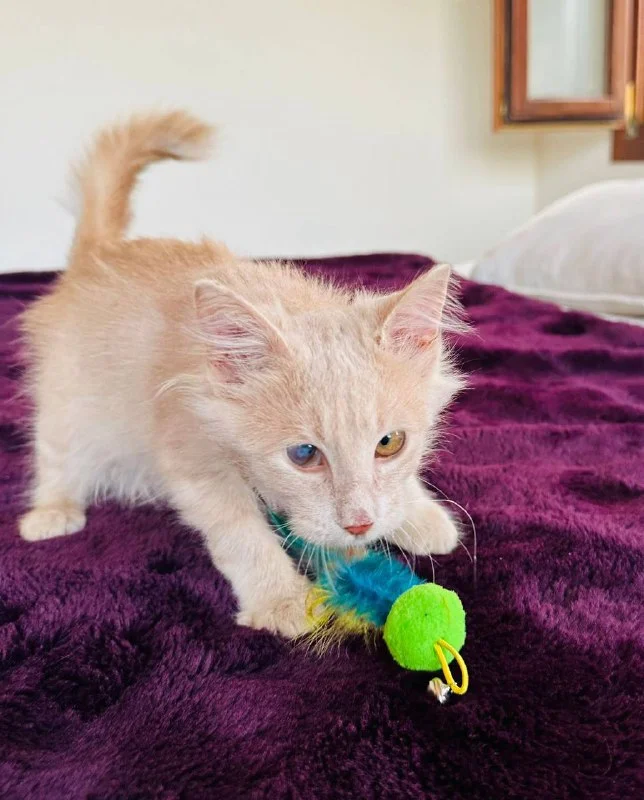 Персик – активный и очень ласковый котенок, который обожает играть и общаться. Он хорошо кушает, любит людей и готов стать преданным другом своей новой семьи. У малыша есть небольшая особенность: из-за инфекции, перенесенной в раннем возрасте, на одном глазике осталась пелена, но оба глазика прекрасно видят, и это никак не мешает его жизни.
