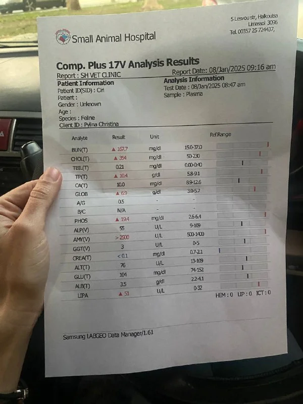 Про туфту согласна! Это ж так, для поддержания общего состояния. По ходу она сама не знает что делать. А еще я обратила ее внимание, что на голове проплешины какие-то. Вот пальцем проводишь, а шерсть на башке снимается вместе с каким-то белым налетом, который на коже. Она поковыряла, проверила лампой Вуда (лишая нет) и назначила эти витаминки Vetilea. Да, и еще укол какой-то сделали. Сказали, что через 2 недели его привезти и еще такой же поставят. Хрень какая-то! Ну не буду же я его по всем врачам Кипра возить, у меня никакой пенсии не хватит🤯