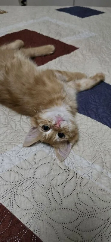 За несколько недель до Рождества на пустыре я нашла двух месячных котят, два милых рыжих солнышка, мальчик и девочка, и оба рыжие пушистые комочки счастья💔 так как это было в преддверии Рождества я назвала их Eve и Christmas🥰 проверили их в клинике, здоровые крепкие малыши🙏🏻