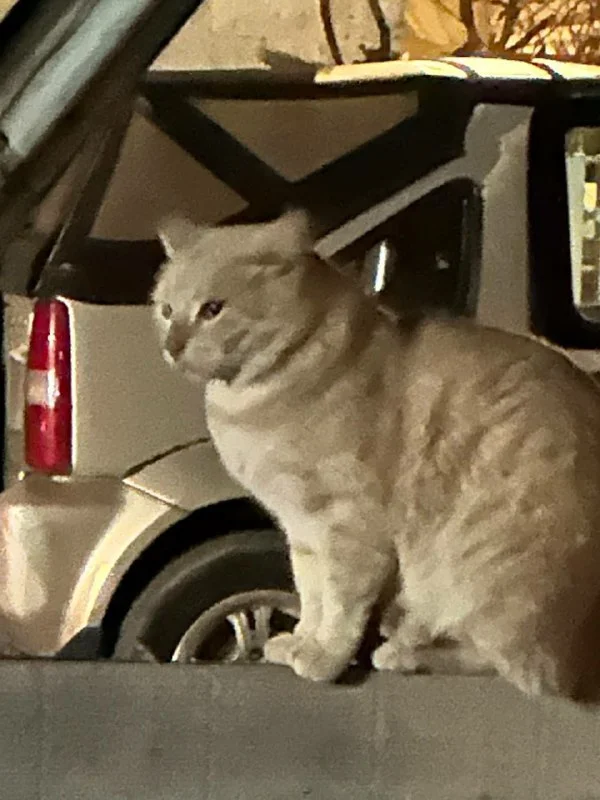 И сегодня же мне позвонил другой человек с того же самого места и сообщил про кошку, которая похожа на нашу. На этот раз про живую. Мы с женой приехали, но так как было уже поздно, на 100% сказать, что это она мы не можем. Но по всем признакам (расстояние от дома, внешне и по очень осторожным повадкам этой кошки) - это она.