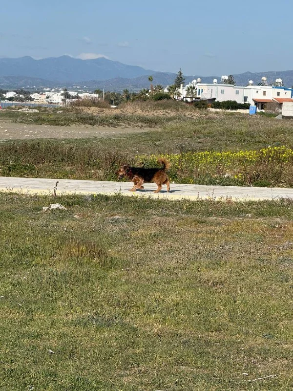 Бегает собака в районе Линопетра, Лимассол. Выглядит ухоженной, рыжего цвета