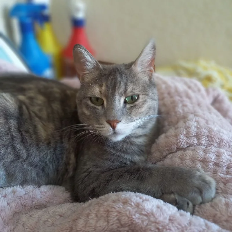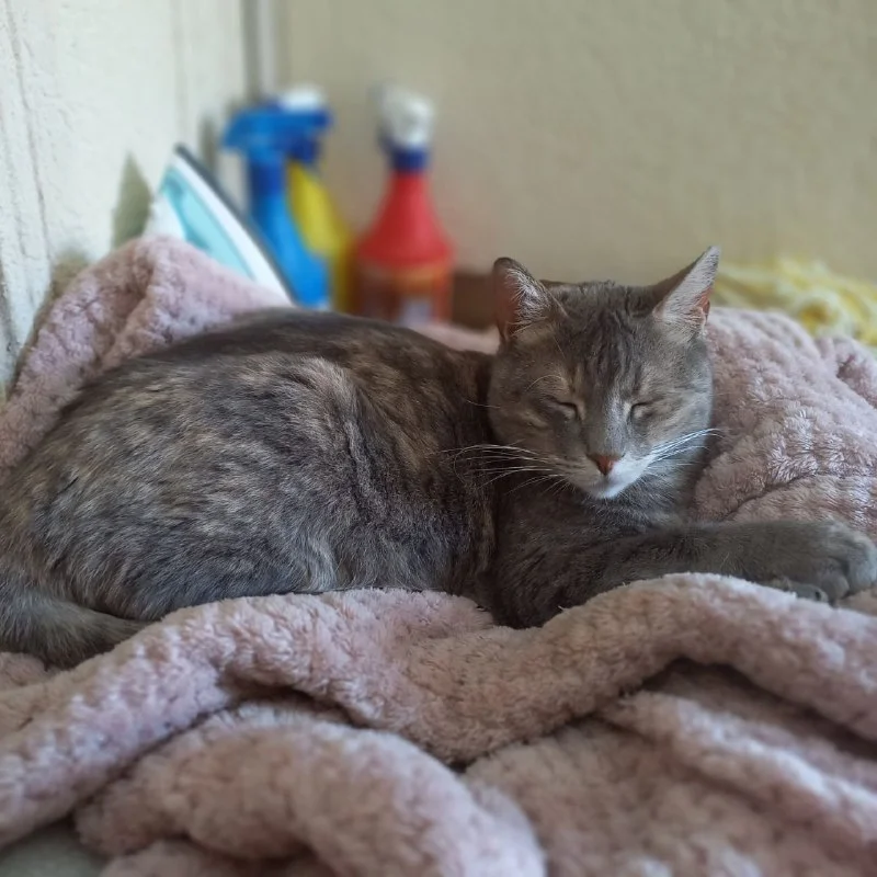 Но есть и хорошие новости. Вот кошечка ЛУна, после перенесённой бронхопневмонии. Она восстановилась и живёт у нас в прачечной, с доступом к улице. Днём иногда гуляет, как стемнеет, мы закрываем выход. Но чаще она уютно спит на пледе и никуда не уходит даже с открытым окном. Вчера после случившегося с погибшим котиком я пошла к Луне, погладила её, а она стала тереться головой о мою грудь и лизать мне руки... И я тогда смогла заплакать. А она продолжала об меня тереться всем телом и мурчать. Как самый лучший, без слов понимающий друг 💔