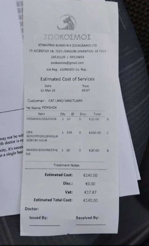 Продублирую чеки за операцию и анализ, (общая сумма лечения 460 евро - операция, анализы, стационар ...