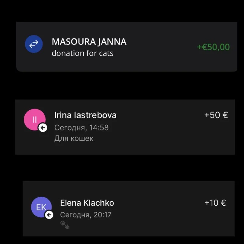 Нам пришли 25 евро - девушки, спасибо огромное, за помощь!!! 😽😻♥️♥️♥️