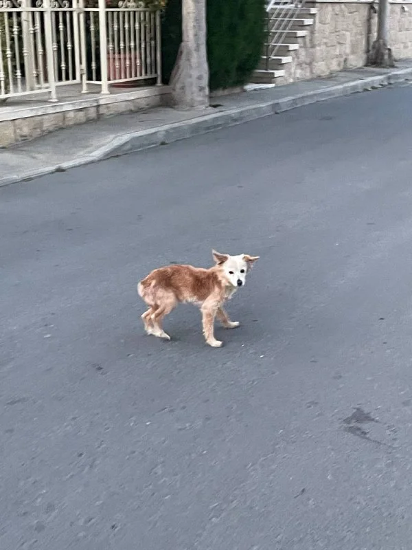 Очень маленький пес бегает по улице, боится моей собаки, я его прицепила на поводок пока чтоб не убегал. Кто-то может подъехать и взять его проверить чип?