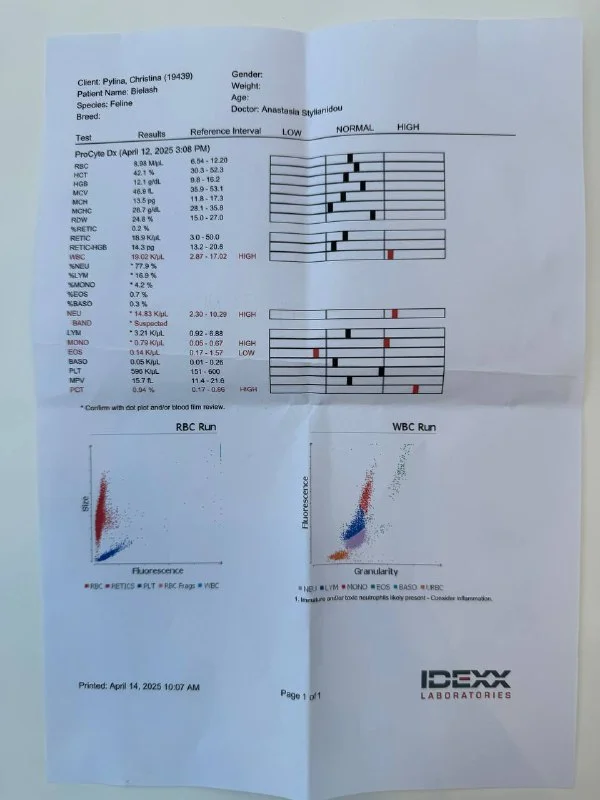 Приезжаю каждый день, но с врачом пока так и не удалось поговорить, жду звонка, чтобы обсудить диагноз и планы на лечение… есть вероятность, что буду переводить в «свою» клинику, где я обслуживаюсь уже 5 лет, как только получится его стабилизировать🙏 в Animal Health