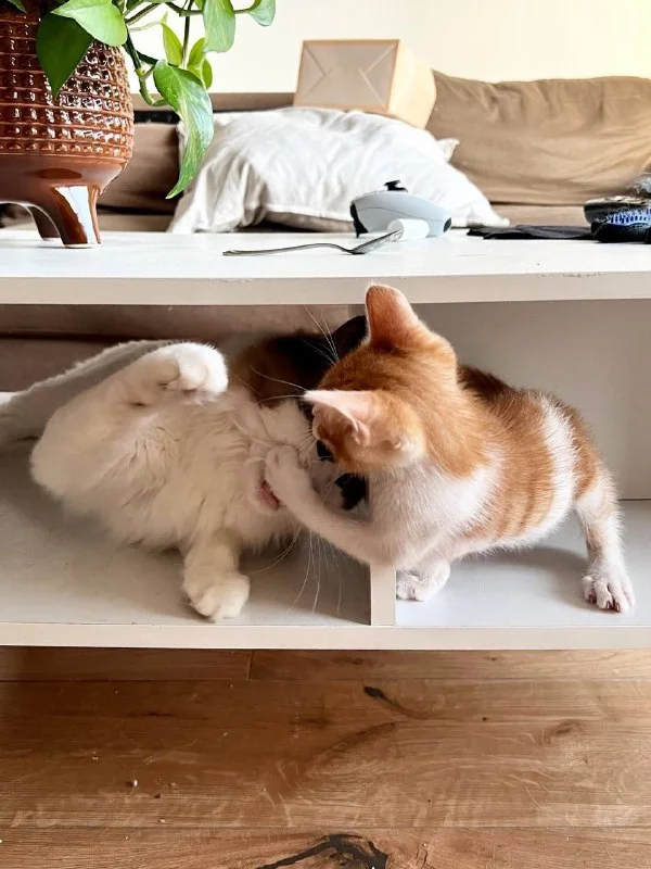 у нас были коты 20 лет, 10 лет и 2 года, и двухлетний доставал старших, а старшие хотели просто отдыхать 23/7, в итоге мы взяли консультацию зоопсихолога и начали прям активную работу по «сплочению коллектива», но буквально через пару недель в доме появилась незапланированная киса 1.5 месяца и всё, она утилизировала всю энергию молодого кота, а он — её 👯😸