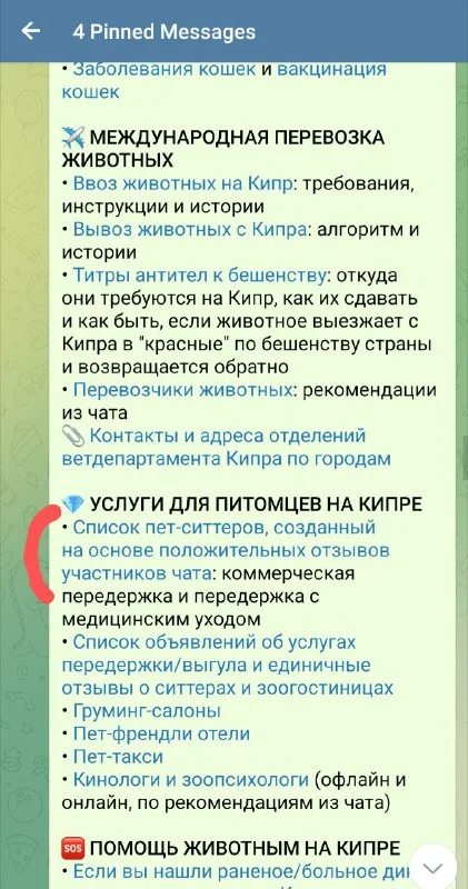 В закрепе есть список проверенных ситтеров и единичных положительных отзывов на передержку