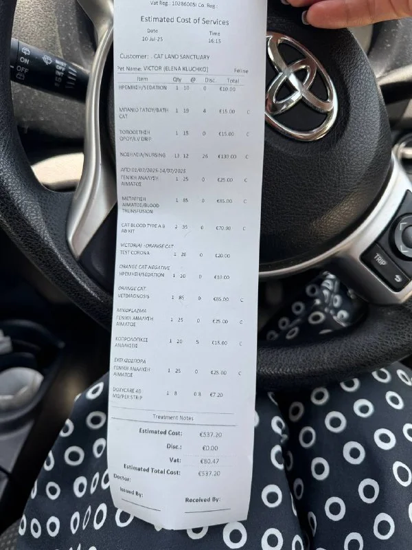 С учетом стационара до понедельника счет со всеми скидками Cat Land sanctuary (за них огромное спасибо Вилене!) вышел на 537 евро 😭