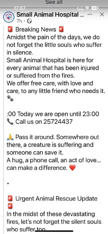 Она это я. Мы уехали с Кипра за 2 дня до пожаров, уход за котами был организован. Дома оставался 1 член семьи, но поскольку никакой организованной эвакуации не было, ориентировались по своим ощущениям, отслеживая инфу. Он уехал из дома в последний момент, особо ничего не успев взять с собой, и котов просто не смог найти. Мы до последнего были уверены, что пожары ограничатся лесом и что будут тушить.