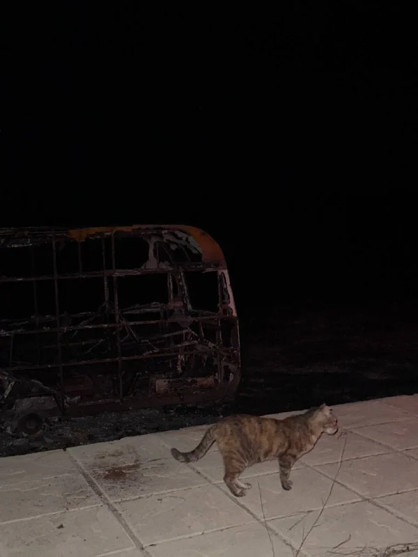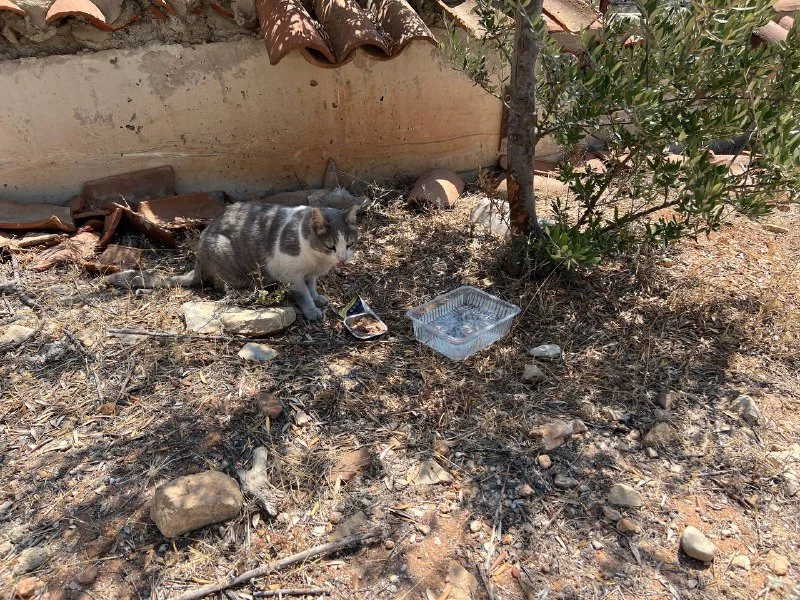 В Лофу, кто знает есть пикник зона, вокруг все выгорело , там были кошка и котенок , дикие, убегали