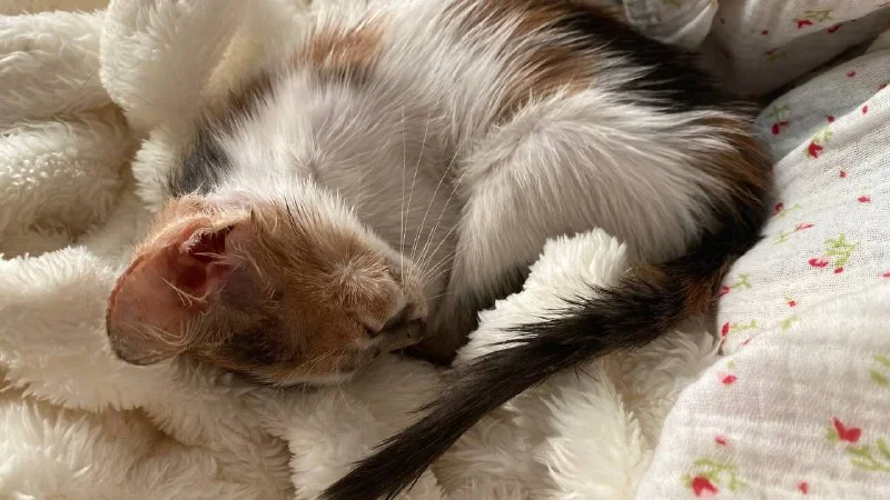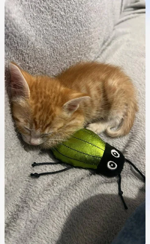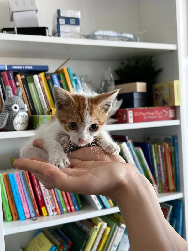 Пацан оказался крикливым из-за стресса и сильно блохастым, поэтому Маша его помыла и повторно обработала🙏🏽 очень заболтливо обращалась с малышом и ежедневно присылала сообщения о его состоянии, сделала милые фотографии, пригласила его проведать и все время поддерживала и меня, и кота🥹