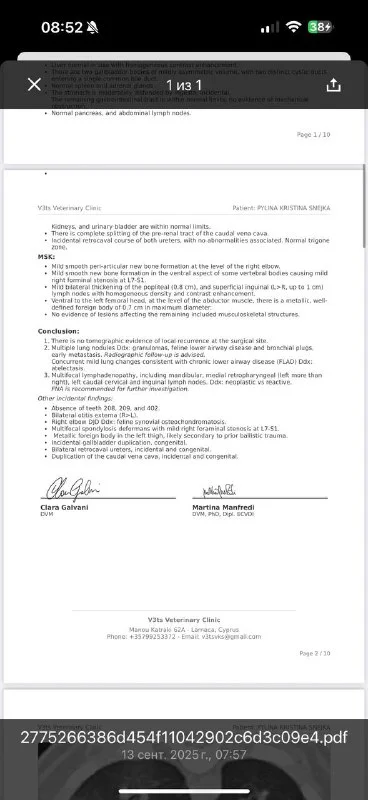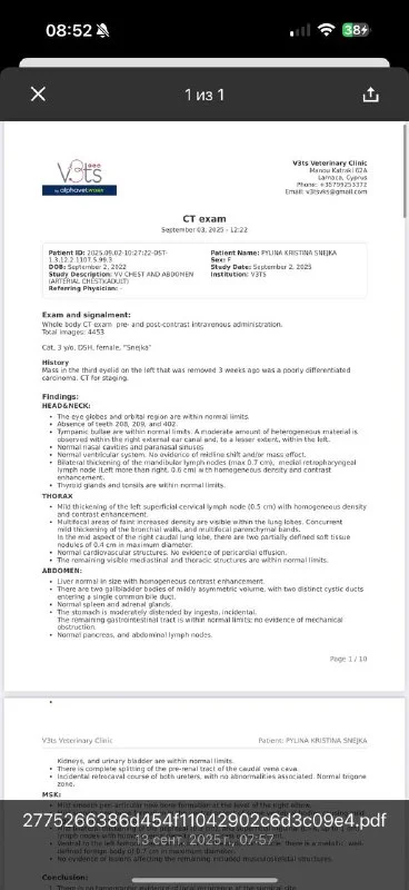 В заключении написано: «На этом этапе правильнее: Сделать ТАБ лимфоузлов (биопсия) - у Снежки взяли образец и отправили сразу, одновременно с кт - там все чисто 😍😍😍